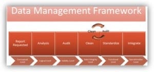 as a framework that drives value into the business by defining the methods used to establish quality. Below is an example of a framework that I deployed to manage quality in the requesting and reporting on data. There are six levels of analysis that following a six-step process on all reports that are published in the enterprise: