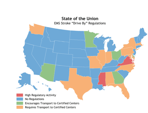 There is perhaps no greater example of the role that formal certification can play in expanded volume capture than in the case of stroke care. In fact, many states require formal certification as a stroke program (Primary, Comprehensive, or Stroke-Ready) in order for EMS providers to transport suspected stroke patients to the facility. We’ve seen the number of states adopting this approach increase significantly over the past several years, likely because without the risk of needing transfer for care, ptients are faring better at their first stop for treatment.